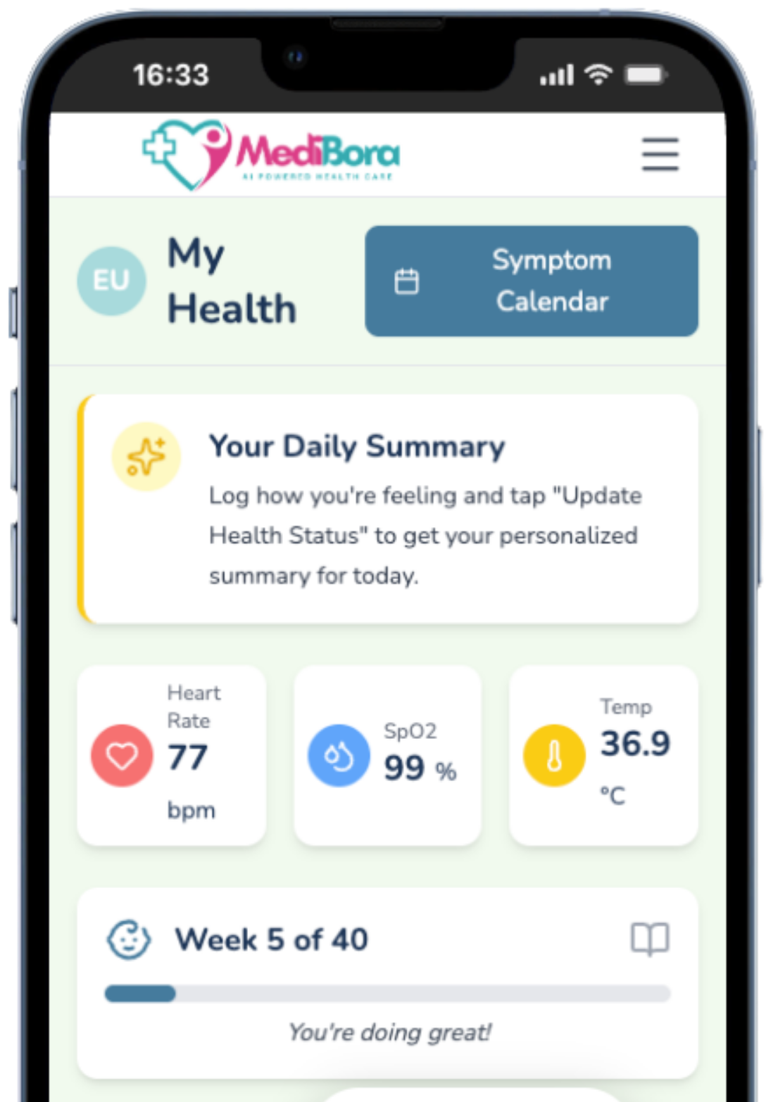MediBora is a hospital-anchored AI-powered Maternal Health platform that extends care beyond clinic walls. We enable continuous monitoring, early risk detection, and real-time intervention throughout pregnancy; saving lives through AI-powered care.